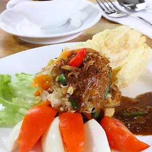 Para tamu dapat bersantap di restoran dessert Dawet Telasih Bu Dermi yang berjarak 350 meter.